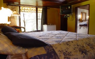 Para seu conforto e relax, os nossos chalés estão equipados com banheira de hidromassagem, lareira, frigobar e TV, além do melhor café colonial. Conheça, abaixo, um pouco mais de nossas acomodações. CHALÉ 01